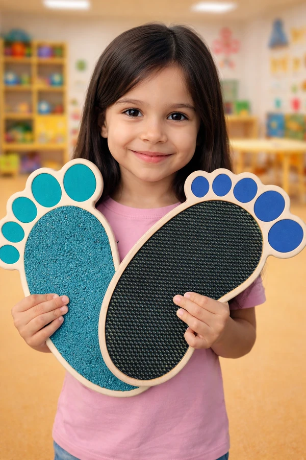 oraz Sensory Feet 3 i 4 skierowane do pracy z dziećmi słabowidzącymi. Wymiar każdej stopy: 37 x 21 cm